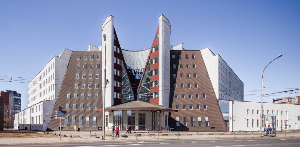 When you hear the name “SoDra” (the State Social Insurance Fund Board), many of you probably picture the administrative building as a boring and gloomy bureaucratic temple. But that’s far from the truth! Consisting of two-symmetrical bodies connected with an axis of an unusual funnel-shaped composition a seven-story planar building is undoubtedly one of the most unique buildings in the Karoliniškės district. Even though the building was designed and built for SoDra from the very beginning, the architects did not limit themselves to functionality – they also added an interesting, eye-catching twist by designing the building to look like a flying swan when viewed from above. Taking a closer look at the unusual structures in one of the service halls, you can also sense a distinct Steampunk spirit.