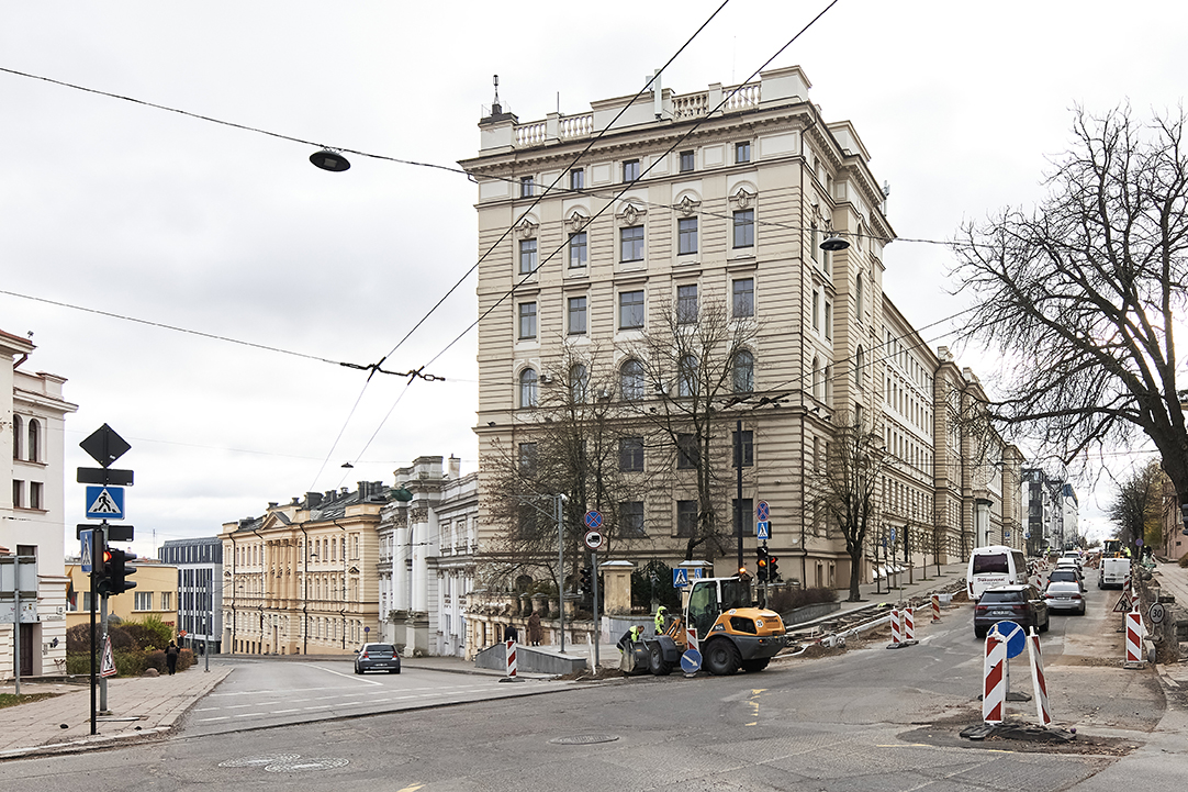 In the early 20th century, a colossal Neoclassical building arose on one of the highest hills near the Old Town, in a newly developed area. Named the first skyscraper in Vilnius, this seven-story structure was truly exceptional for its time and considered a unique urban solution, integrated into the cityscape of Pohulianka (now J. Basanavičius) Street.