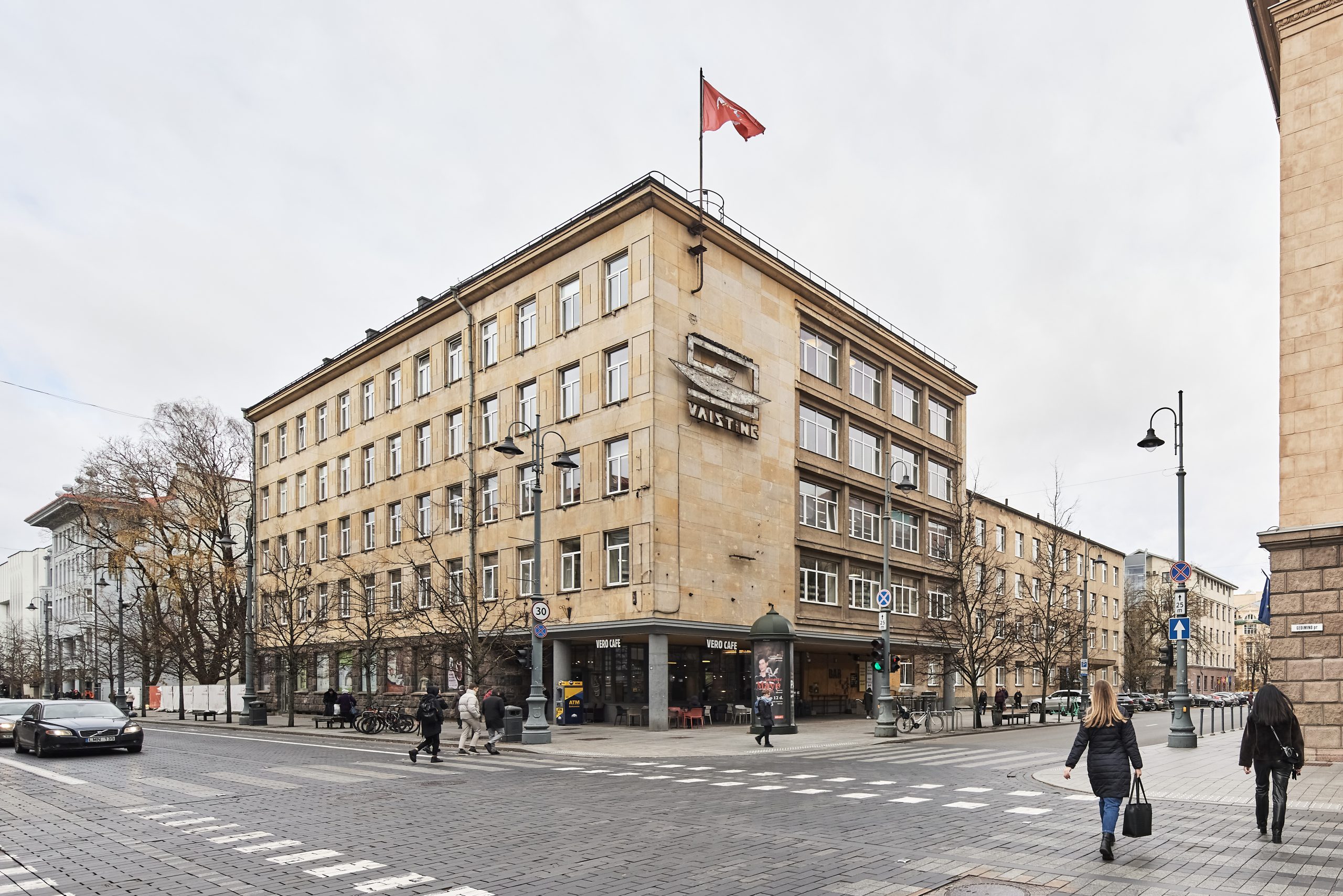 The building at Gediminas Avenue 27 is considered one of the most valuable, if not the most valuable, masterpiece of interwar modern architecture in Vilnius. It is a kind of time capsule, despite the fact that some of its elements, such as the revolving doors, bent window frames, and certain interior details, have already been destroyed.