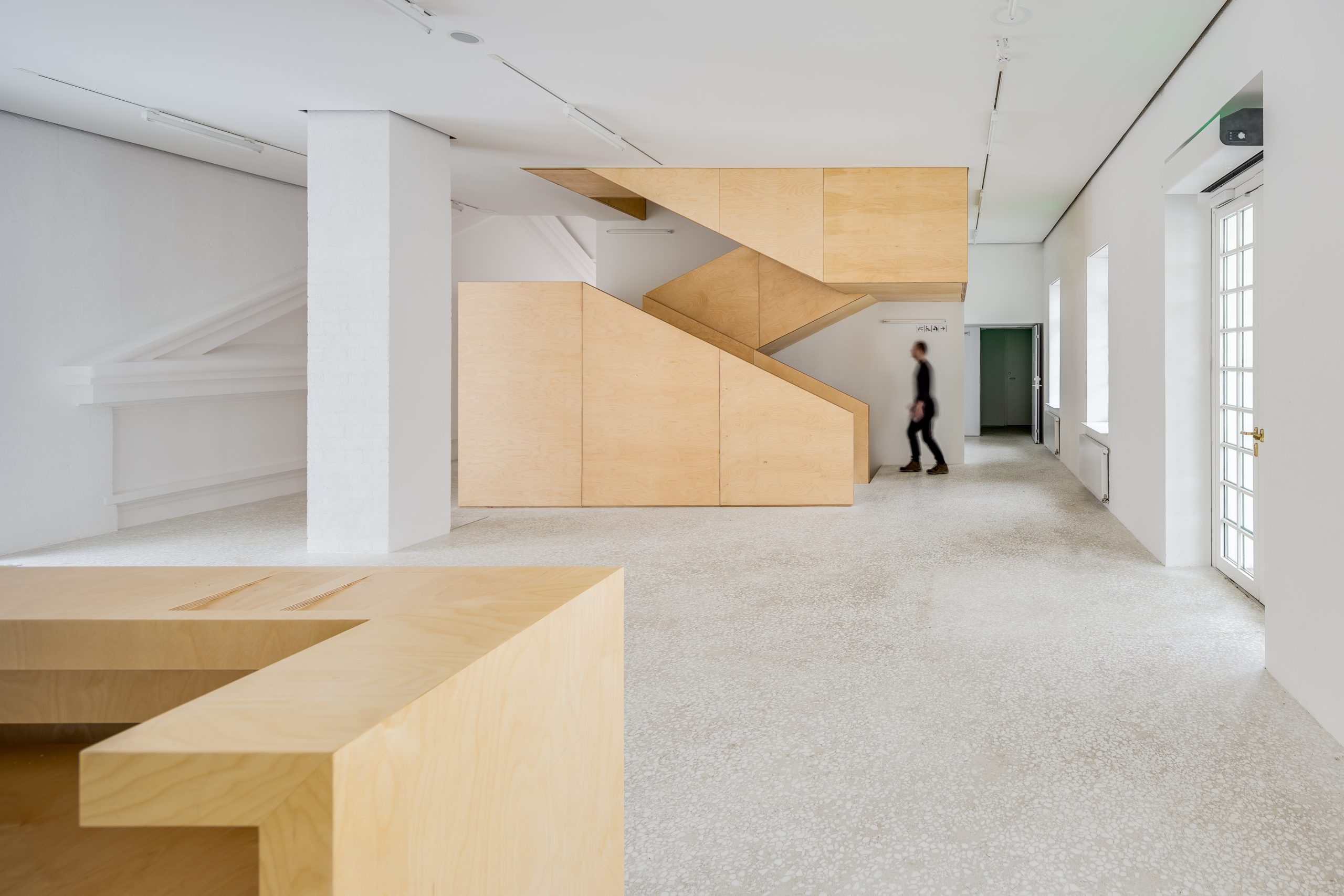 During the reconstruction, most of the building’s original structure was preserved, but at the same time, bright, minimalist interior spaces were opened up, which are also adapted for an interactive exhibition. In addition, deeply hidden architectural layers were preserved, reminiscent of the buildings that previously existed in this site – in one of the walls of the building, an authentic fragment of a carriage wall is still embedded.