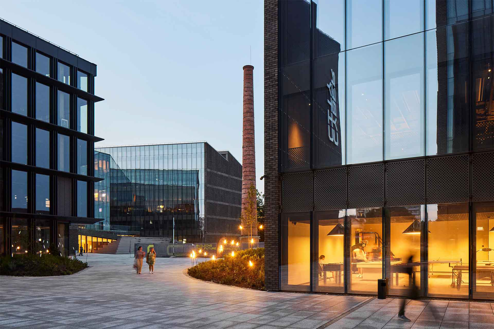 The building complex comprises office, co-working and commercial spaces, as well as innovative recreational spaces designed for the technology community. There is a sense of care for the well-being of employees in all spaces of the complex.