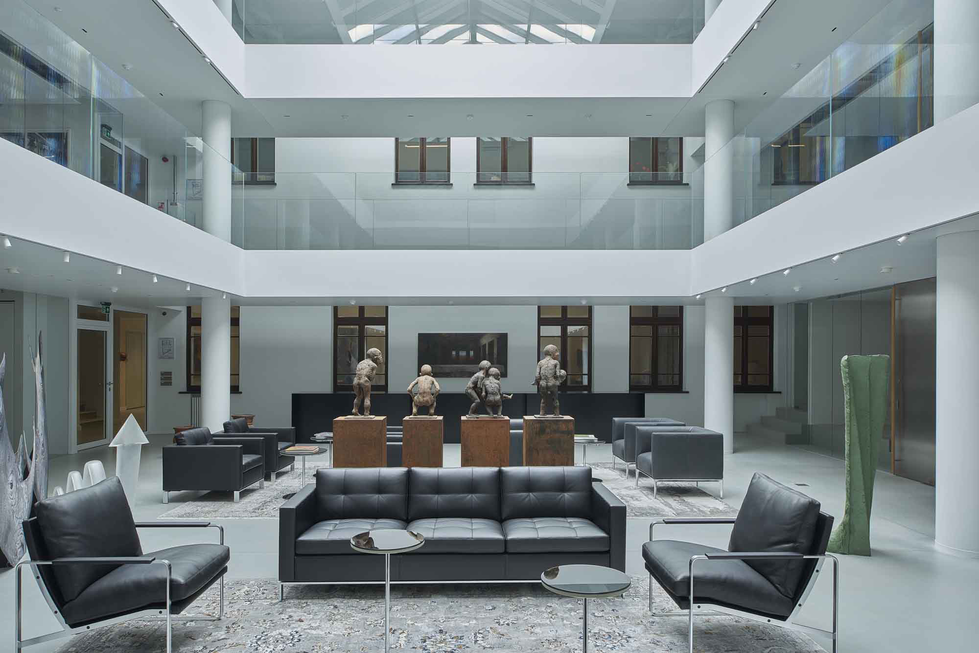 The old part of the building has surviving examples of polychrome wall paintings that have been preserved. The space is suitable for offices and art exhibitions. The atrium in the annex is part of the building and also showcases the works of the LEWBEN Art Foundation, a private art foundation, which can be viewed not only from the main hall, but also from the ‘balconies’ on the second and third floors.